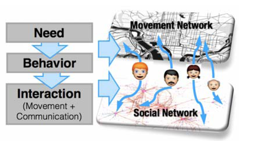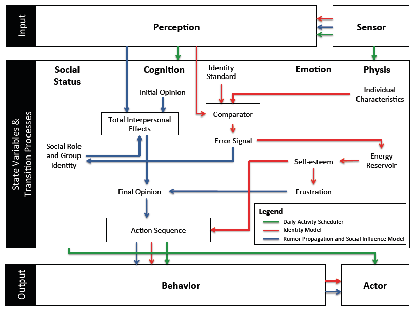 • The agent’s cognitive framework allowed for modeling their activities in physical space and interactions in social space.