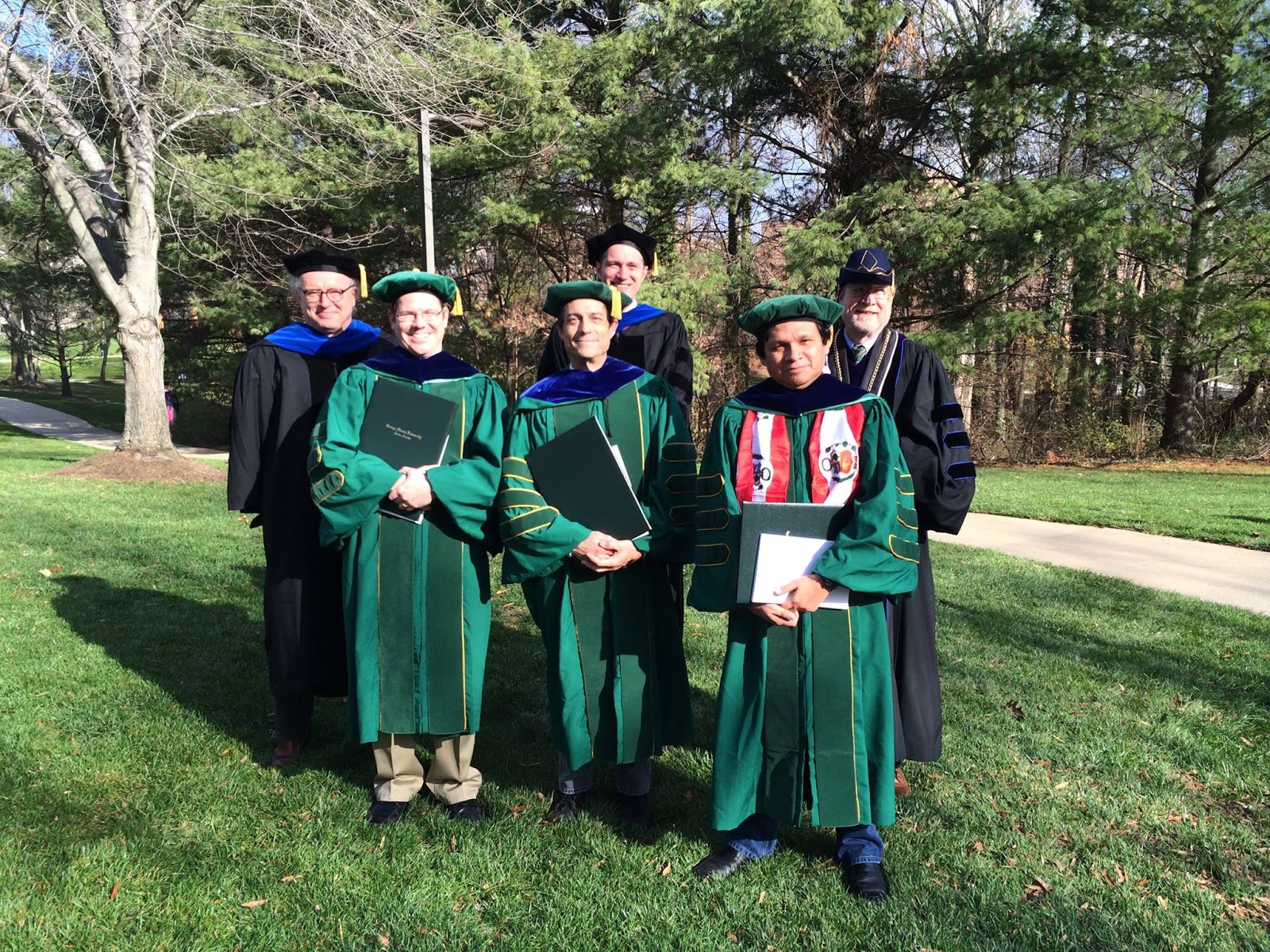 In the picture are newly hooded Drs Palmer, Rouly and Magallanes.